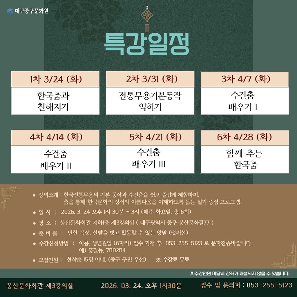 중구문화원 2026년 다문화가족 문화활동 지원사업 - 예술아카데미 수강신청 모집